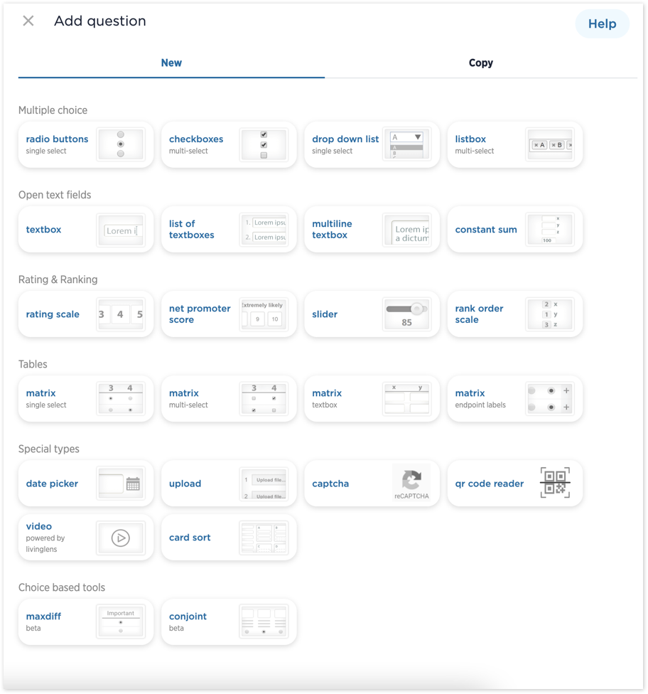 Email verification can be set up in a survey by adding one of the following question types to a survey: