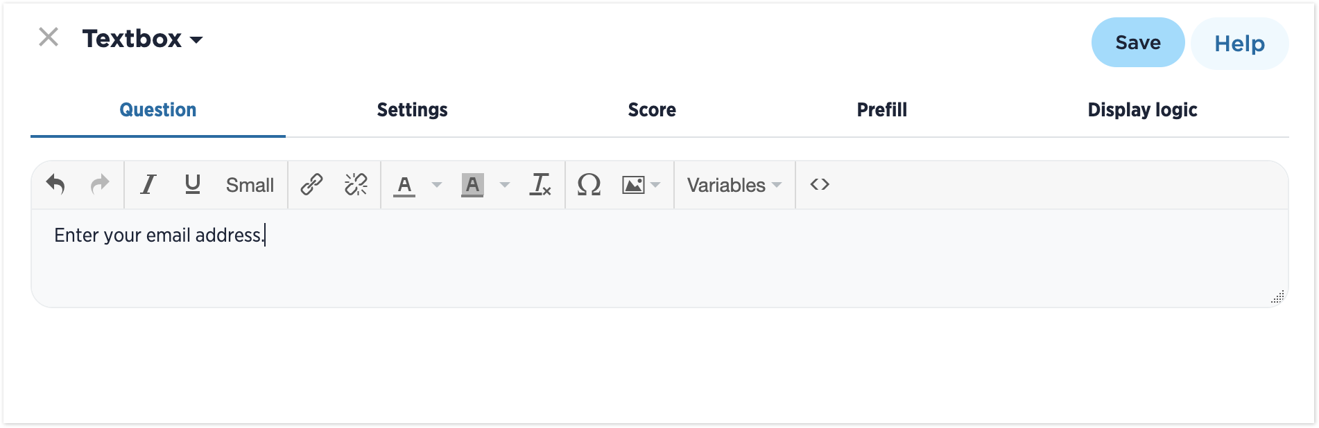 - In the box on the Question tab, enter text that instructs respondents to enter their email addresses.